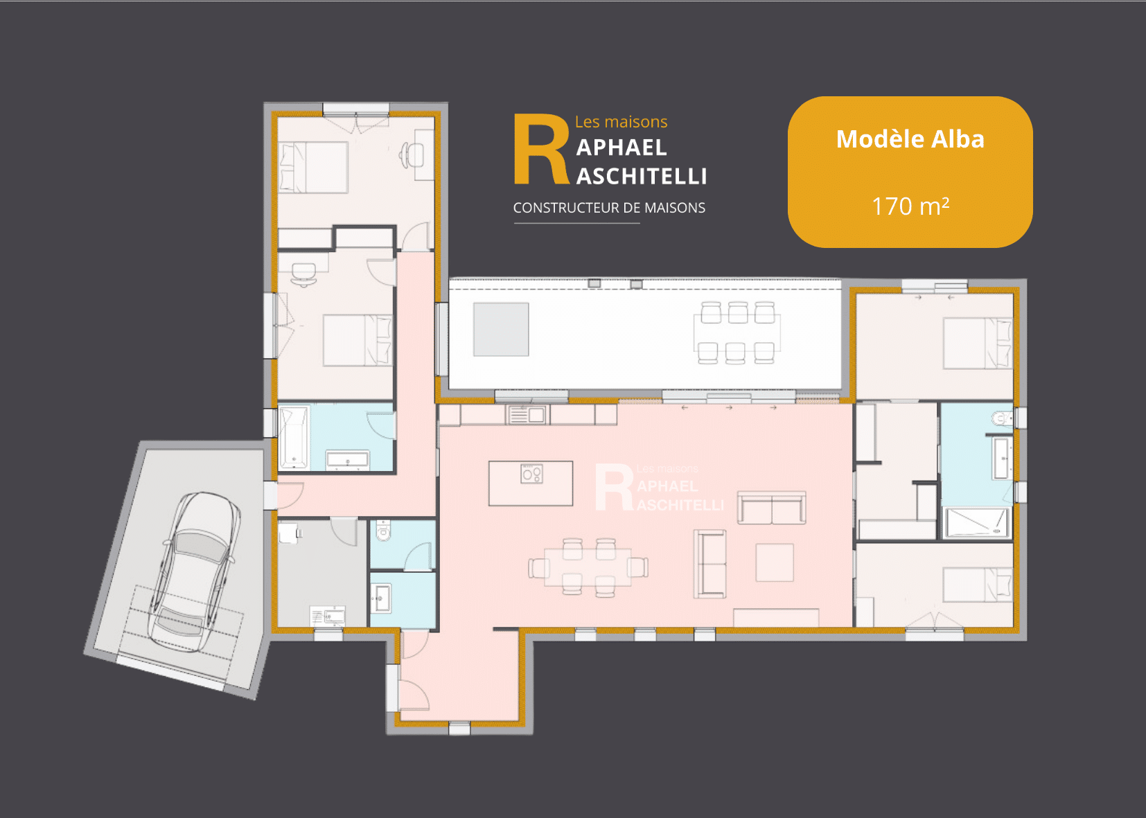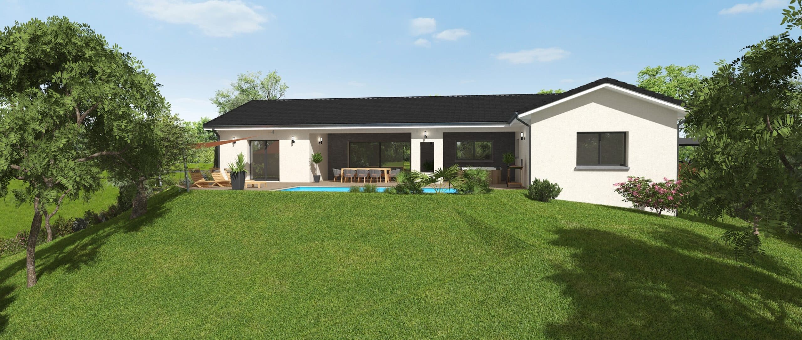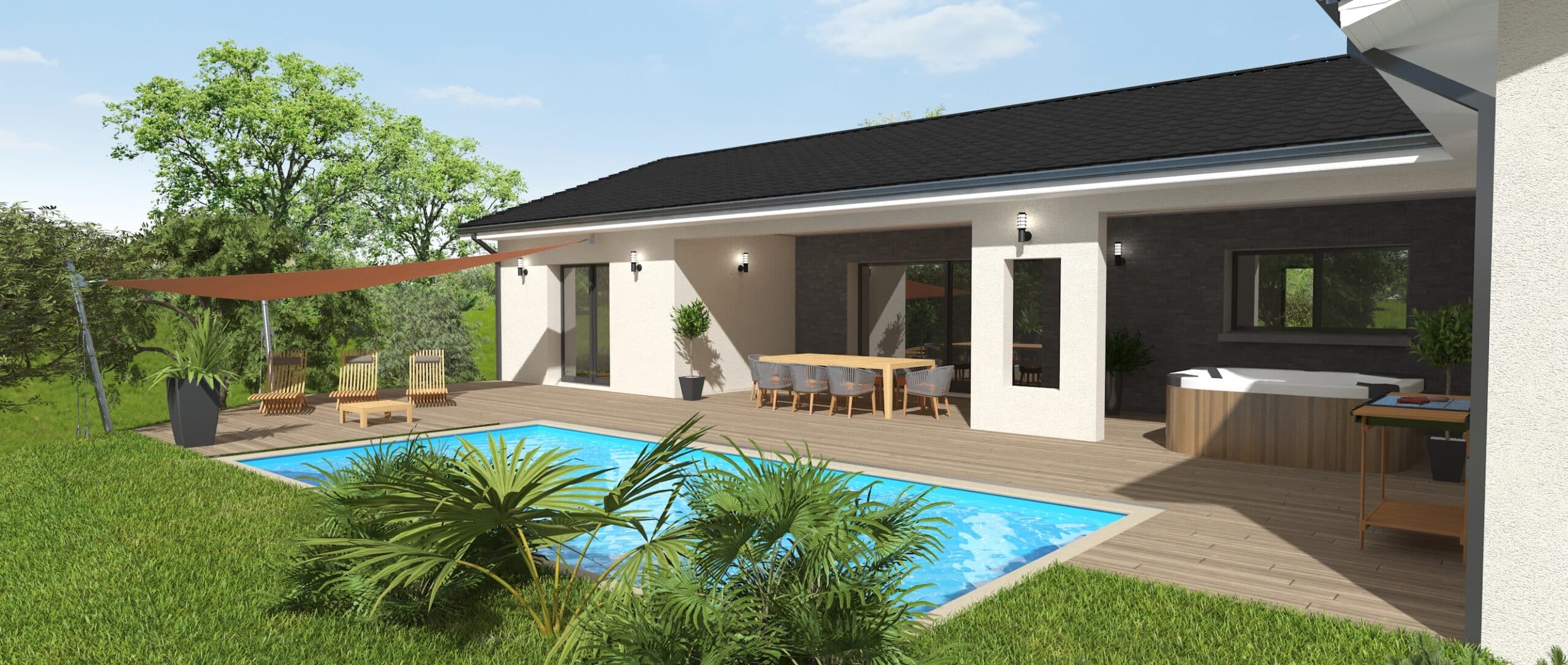 Ce modèle de maison, avec une surface habitable de 170 m², incarne l’équilibre parfait entre espaces généreux et optimisation fonctionnelle. Conçue dans un style contemporain, cette maison offre des volumes spacieux et lumineux, idéaux pour répondre aux besoins des familles modernes.