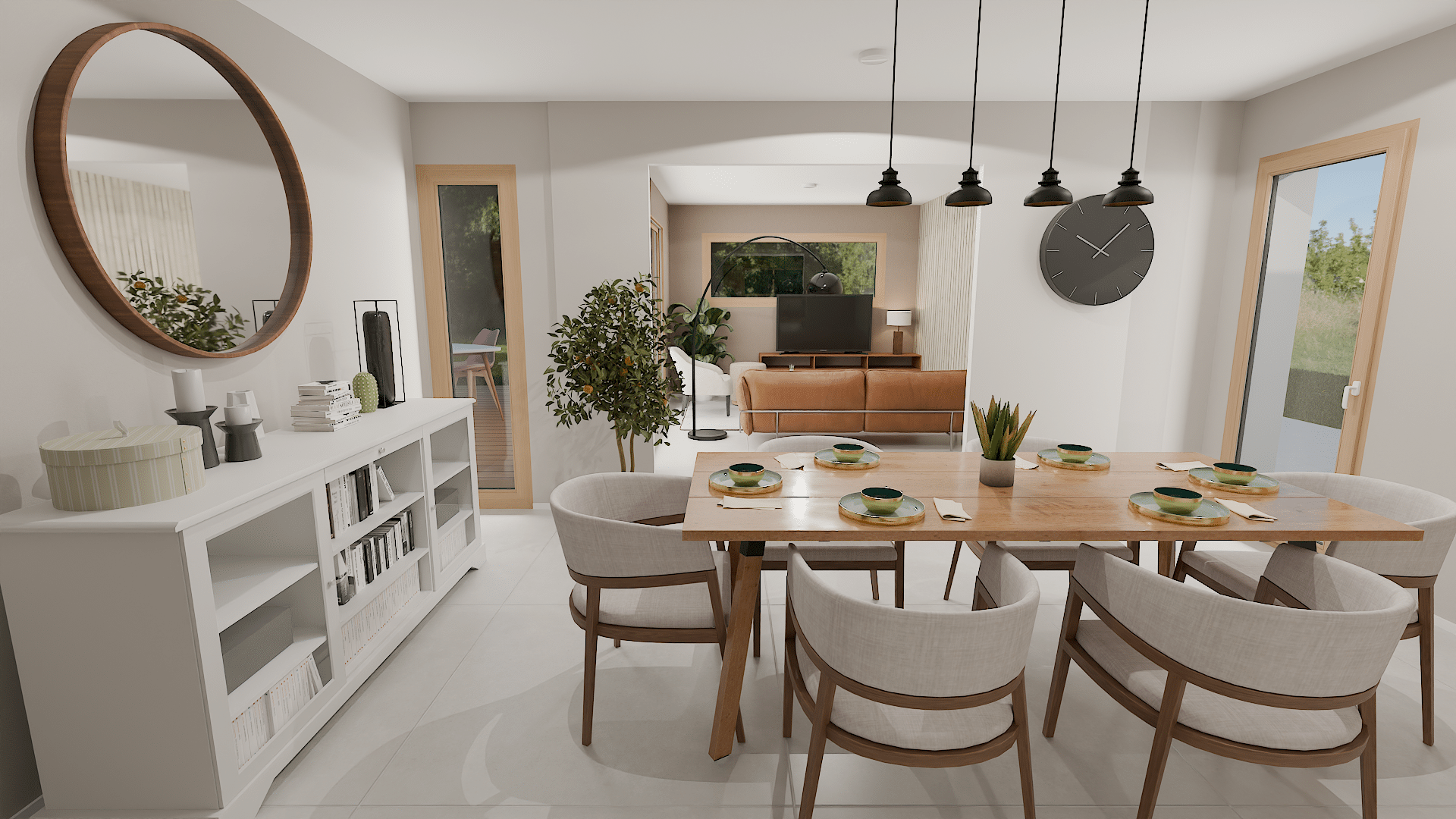 Au rez-de-chaussée, un séjour spacieux de 25,43 m² s’ouvre sur une terrasse extérieure, idéale pour profiter des journées ensoleillées. La cuisine attenante, d’une surface de 10,65 m², est conçue pour allier praticité et convivialité. Un bureau de 10,81 m² ainsi qu’une chambre avec dressing et salle de bains apportent un confort optimal au niveau principal.