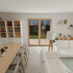 Maison Giulia – 80m² de plain-pied Avec ses 80m² et 3 chambres, la maison Giulia offre un cadre de vie pratique et spacieux de plain-pied. Elle dispose d’un garage et est équipée d’une pompe à chaleur ainsi qu’un pack domotique pour une gestion à distance, répondant aux exigences RE 2020. Elle se compose de :