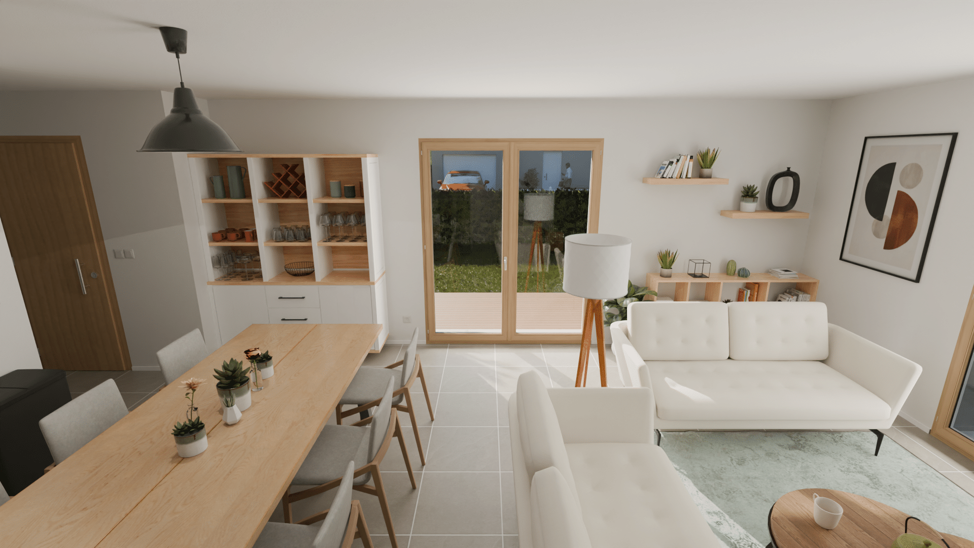 - 1 séjour avec cuisine ouverte
